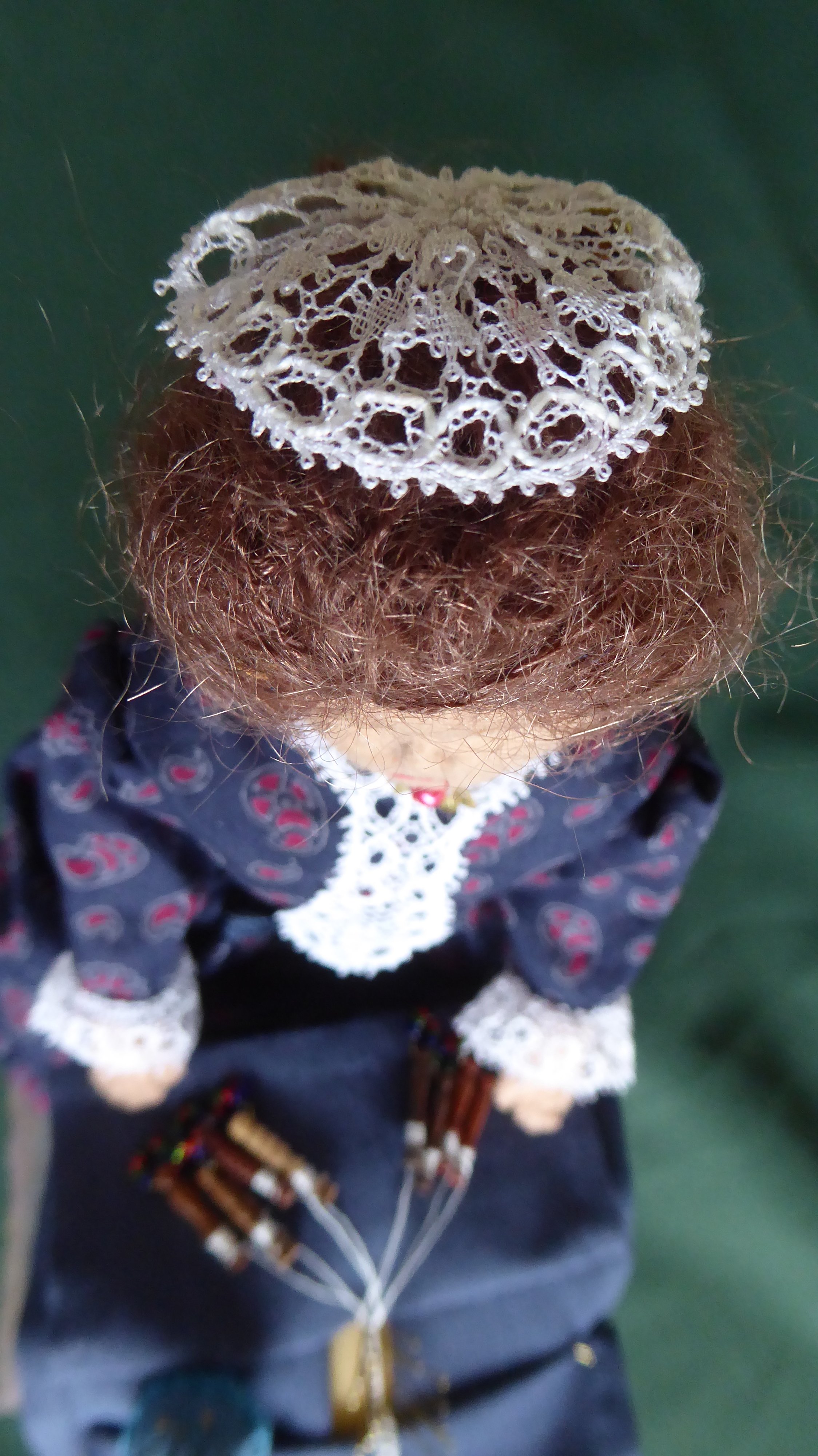 This year Covid-19 has meant that my husband and I needed to self-isolate! This would be the opportunity to tidy and remove things from our cluttered home! On opening ‘that drawer’ I decided that rather than Spring Cleaning the ‘one day’ had come to transform the doll into a lace maker; a long overdue project and a much more enjoyable activity!
