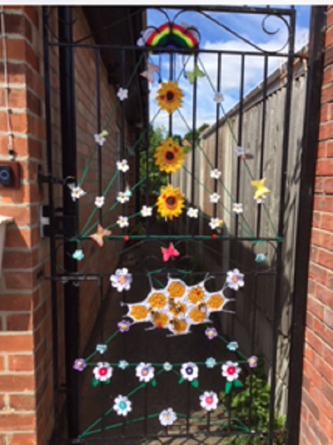 As families began to make rainbows, and messages appeared in windows acknowledging our wonderful health workers in the NHS, I joined in by crocheting bunting and a rainbow to hang up on my garden gate.