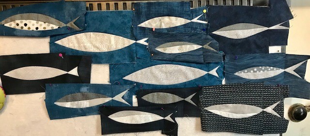 I’ve not got much booked for February workshop-wise. I’ve been working on the fishes that I did with the CraftyMonkies workshop (www.craftmonkies.com) with Nicholas Ball last month. I’m enjoying making my shoal of glistening silver fish. If you look on Instagram at #shoalsewalong you will find loads of different fish in all shapes, sizes and fabrics, which people are showing.