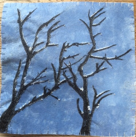 This piece was inspired by the our daily walks around our village. I noticed all the birds nests that were now exposed this time of year when the trees are asleep and empty of leaves.