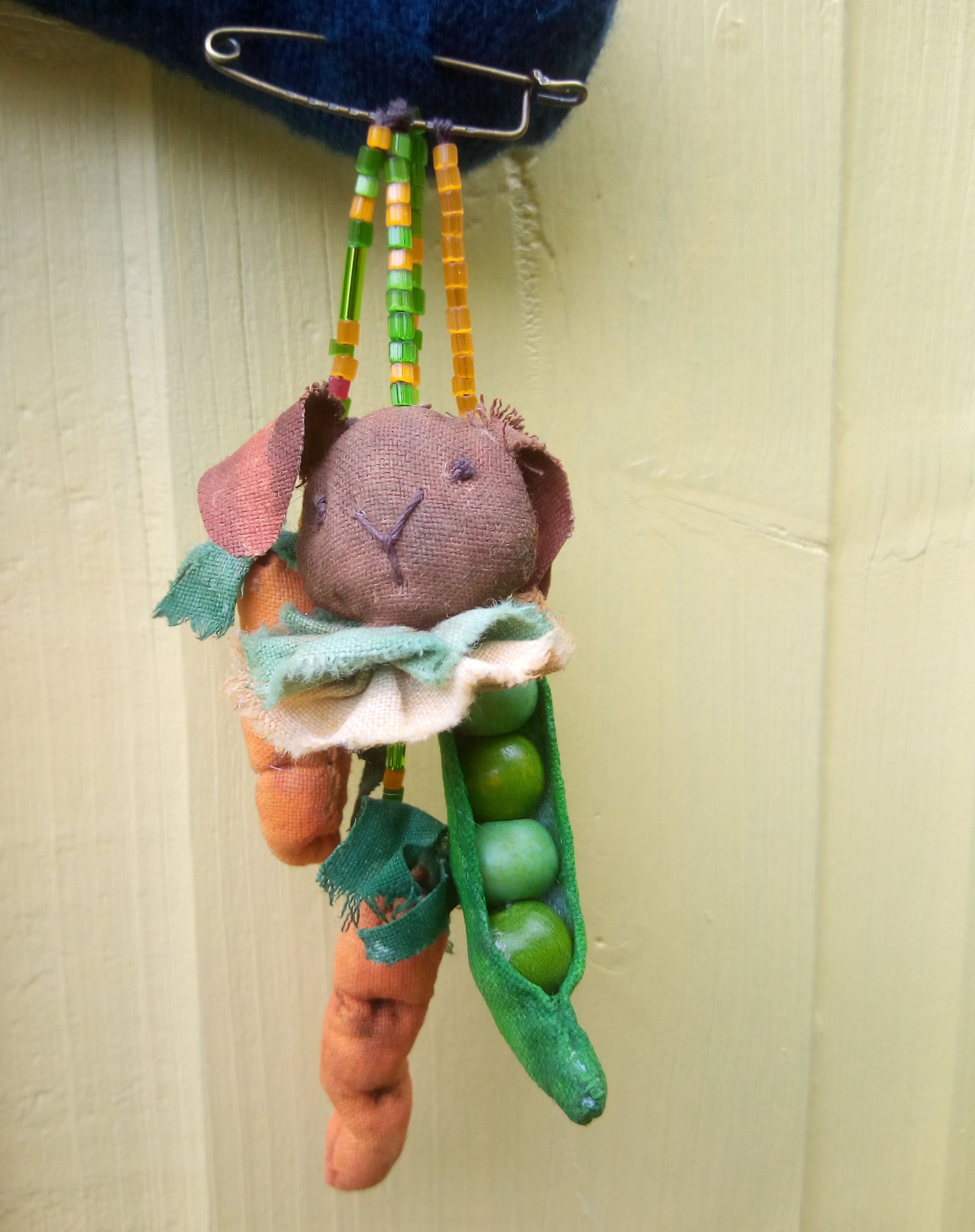 Rabbit in the Veg Patch. Flower Beds. Hanging Peas.